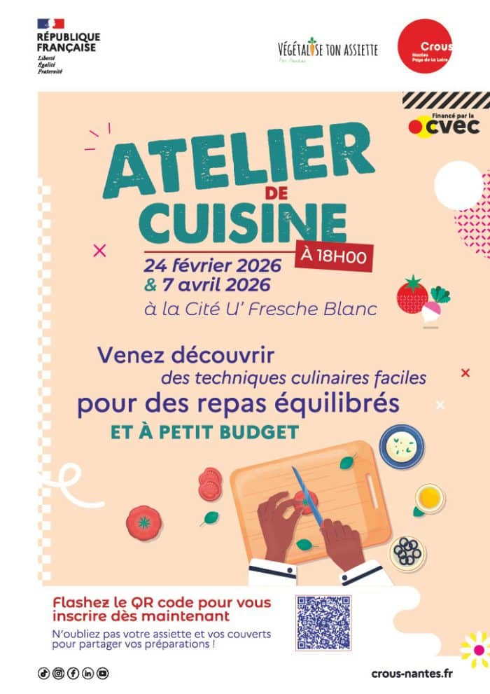 Le 24 février et le 7 avril à la Cité U’ Fresche Blanc, lors d’un atelier cuisine, venez découvrir des techniques culinaires faciles pour des repas équilibrés et à petit budget.